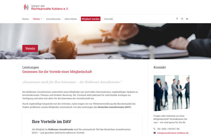 Verein der Rechtsanwälte Koblenz. 1912 gegründet und vereint über 400 Mitglieder im Landgerichtsbezirk Koblenz